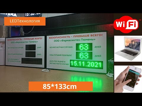 Электронное табло "число дней без несчастных случаев, наш лучший результат, дата последнего несчастного случая" от компании LEDТехнология